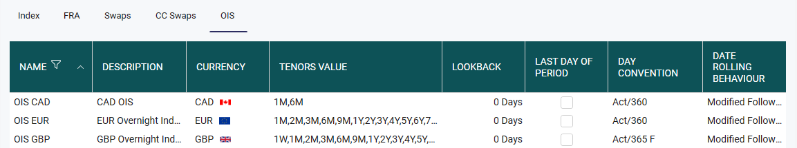 Tenors Value - The different tenors that are available for the index or spread curve.