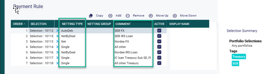 1. Make the selection for the different payments, for example on Counterparties and/or Deal types. Select neetting types (listed below). Write a comment to remember what the rules is for.