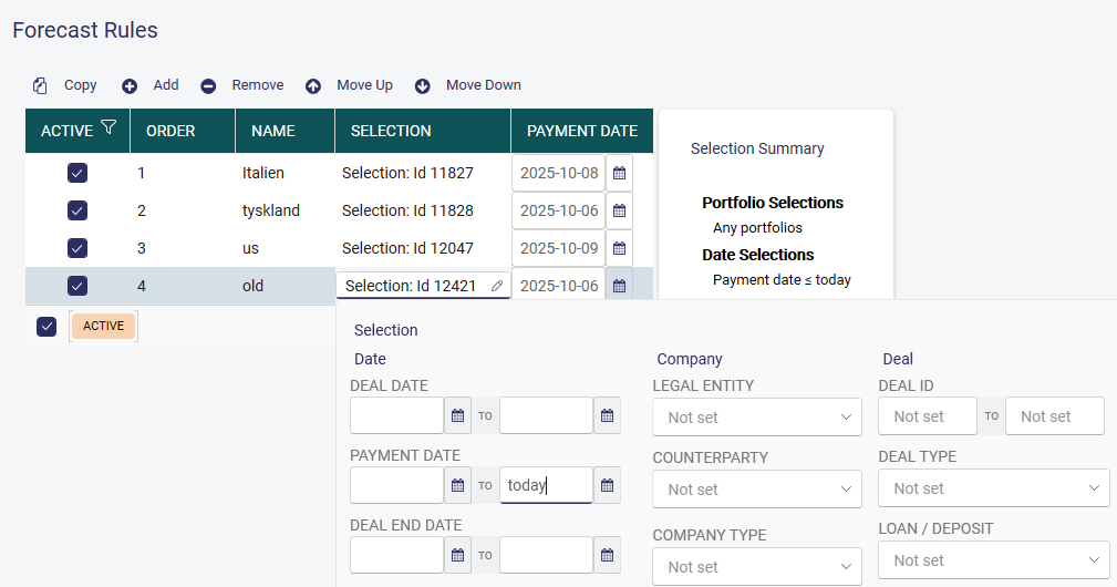 In Cash Management/ Cash Flow Forecasting/ Forecast Rules