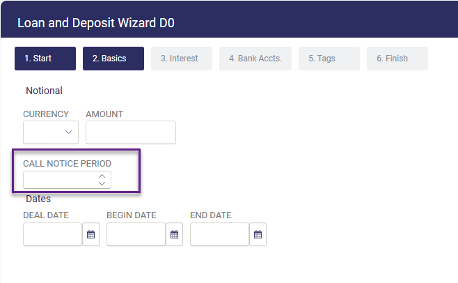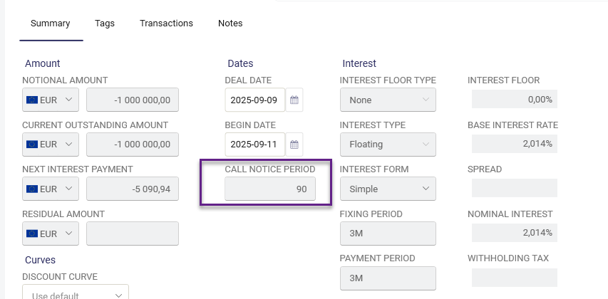 Enter a Loan as normal, in the call notice period enter the period e.g. 90