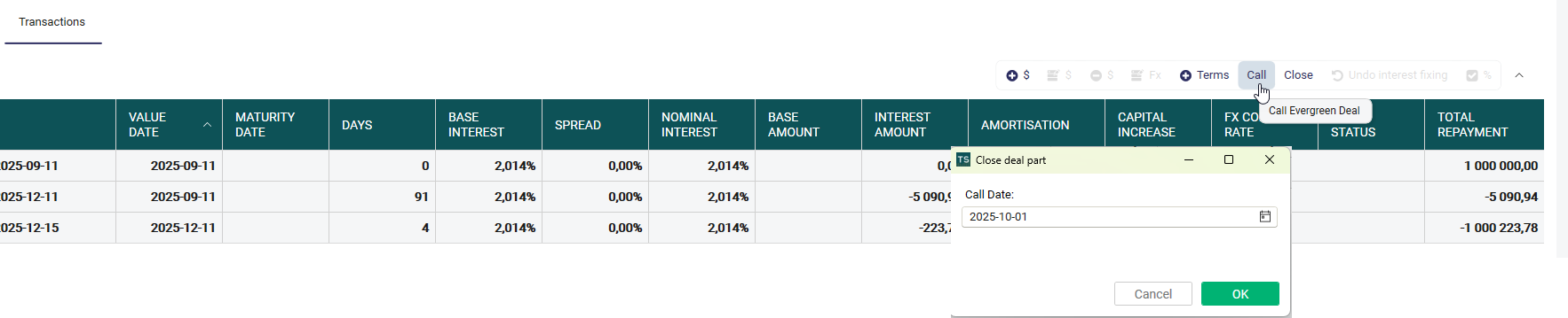 In Treasury Systems a evergreen Loan is registered as a "regular" loan with the difference that you need to set a call notice period.