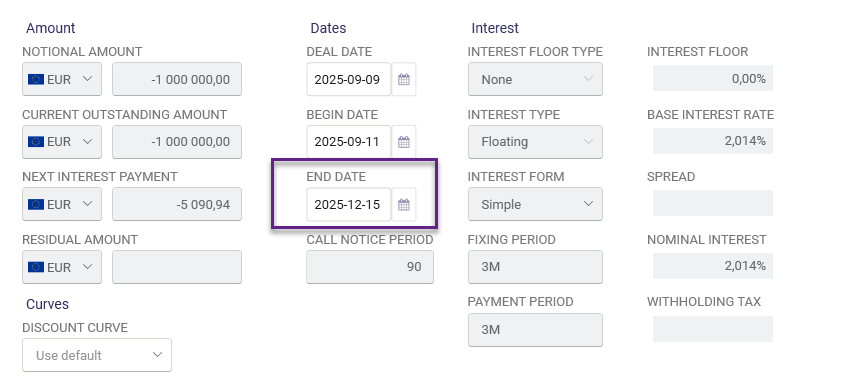 The loan in the example above, will automatically be prolonged every day, meaning that the days to final maturity is always 90 days.