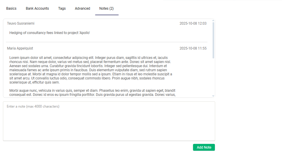 If several notes are added they will be shown in descending order after date and time, number of notes will be shown on the tab.