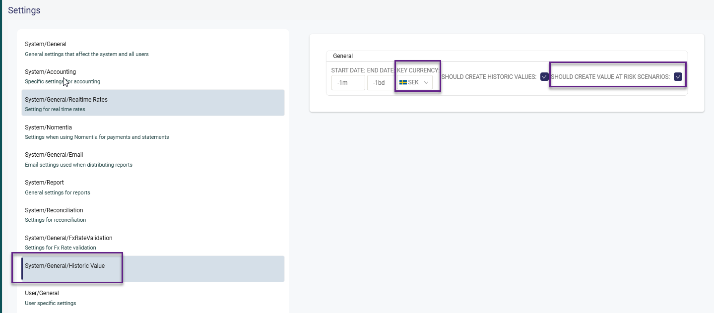 System Setting Activate "Should create Value at Risk Scenarios" Select consolidation currency (Key Currency)
