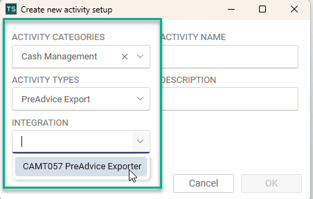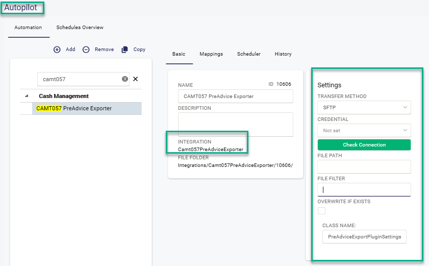 Create an activity of type Camt057PreadviceExporter in the Autopilot.